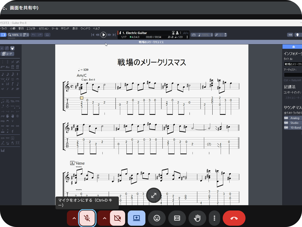 リズム・コード・指のフォームなどは画面共有と音声でしっかりチェックできるので、レッスンの質が落ちることはありません。